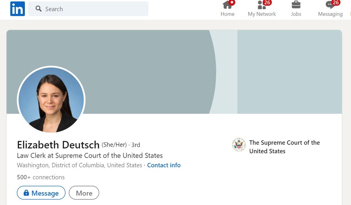 Meet Elizabeth Deutsch. She's currently a law clerk for Justice Breyer.